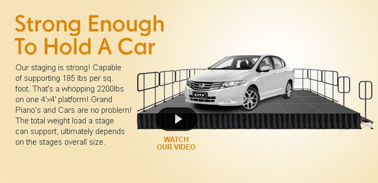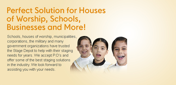 |           Featured Product CategoriesPortable Stages & Event Stage DesignThe Stage Depot is America's Portable Staging Authority. We are here to help you choose the right stage system for your needs and budget! There are a lot of stage choices out there and our staging experts are here to educate you about the best choices available to fit your needs. We carry all the major brands of staging such as Intellistage, Midwest Folding , All-Terrain, Pro-Stage, Staging 101, Signature Fencing Alpha-Deck, Express-Deck staging and National Public Seating staging to name a few. Whether you are looking for portable stages, mobile stages with wheels, modular stages, aluminum stages, height-adjustable stages, or outdoor stages, you can be sure you've come to the right place! We also carry all the accessories you could possibly need for your stage such as stage guardrails, stage ramps, stage skirts, stage steps, backdrops, Truss and Roof systems and transportation/storage systems. We only specialize in selling portable stages, and because of this, our friendly staging experts are the best in the business! We have years of experience assisting churches, schools, government organizations, the military, and many business organizations in finding the perfect stage system for their needs and budget. We take the hassle out of purchasing your stage and do all the work for you. We listen to your wish list and help you design the perfect stage system for your needs and budget. All our stage designs and expert advice is always fast and free! Simply call us at 877-884-3426 or email us at orders@thestagedepot.com, and we will be more than happy to assist you. |  |